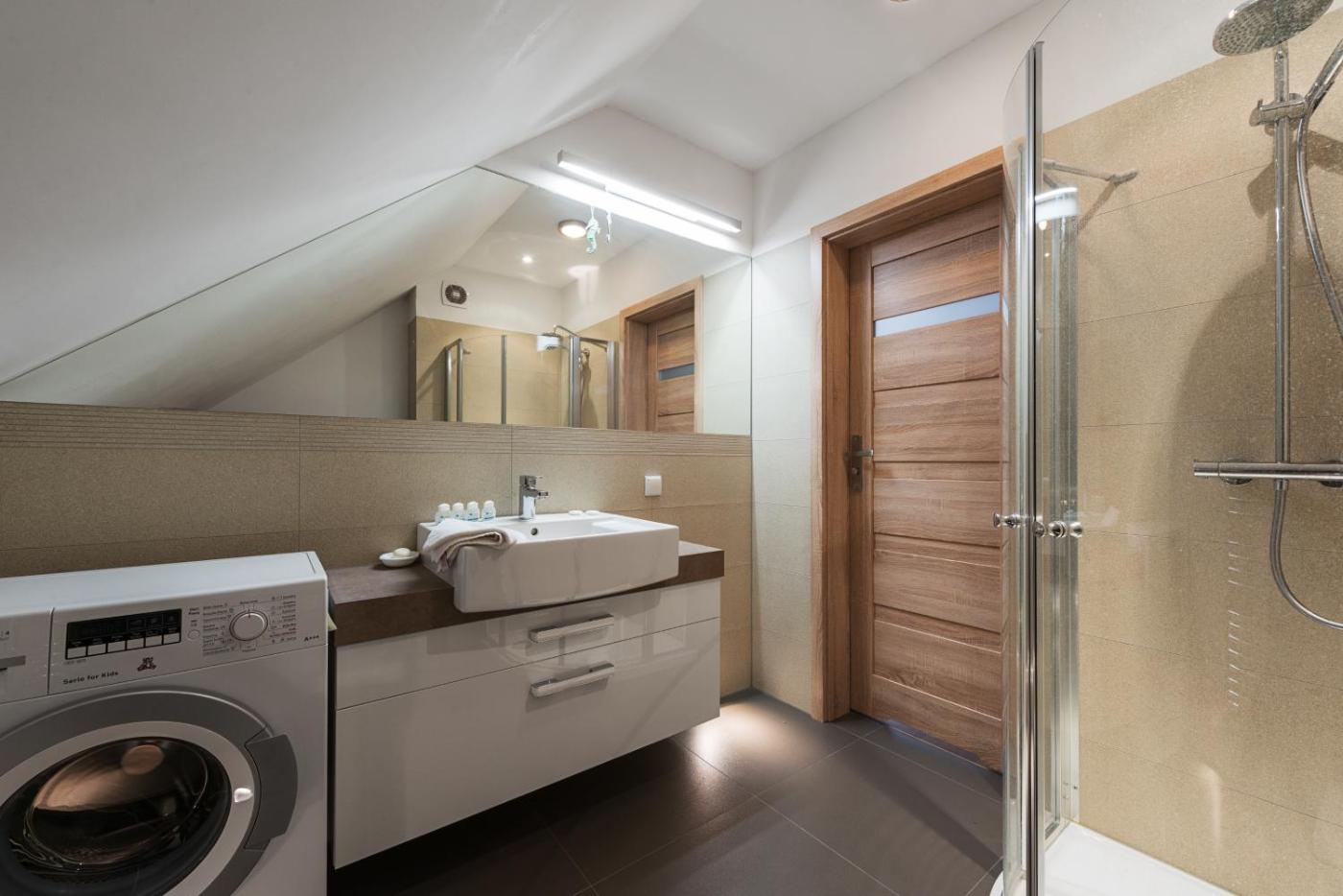 Apartament z 2 sypialniami i ogrodem (6 osób dorosłych). The spacious apartment offers a washing machine, a coffee machine, as well as a private bathroom boasting a shower and a hairdryer. The fully equipped kitchenette has a stovetop, a refrigerator, a dishwasher and kitchenware. The apartment features a dining area, a wardrobe, heating, a flat-screen TV, as well as garden views. The unit has 3 beds. Apartament - 6 osobowy. Powierzchnia pokoju ok.: 67 mkw.