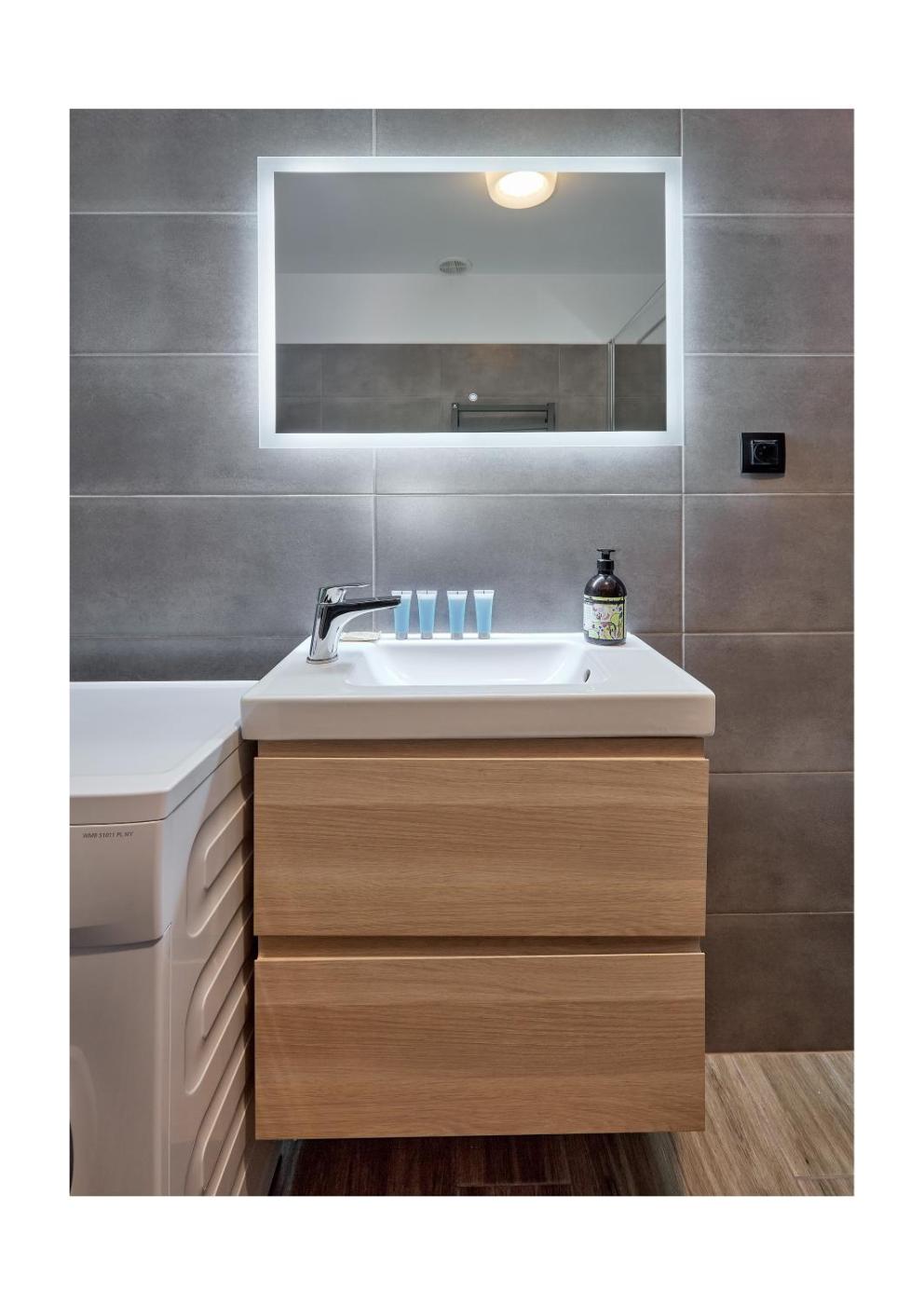 Oferta apartamentu obejmuje sypialnię (1), salon, aneks kuchenny z pełnym wyposażeniem, w tym lodówką i ekspresem do kawy, a także łazienkę (1) z prysznicem oraz bezpłatnym zestawem kosmetyków. W apartamencie zapewniono ręczniki i pościel.